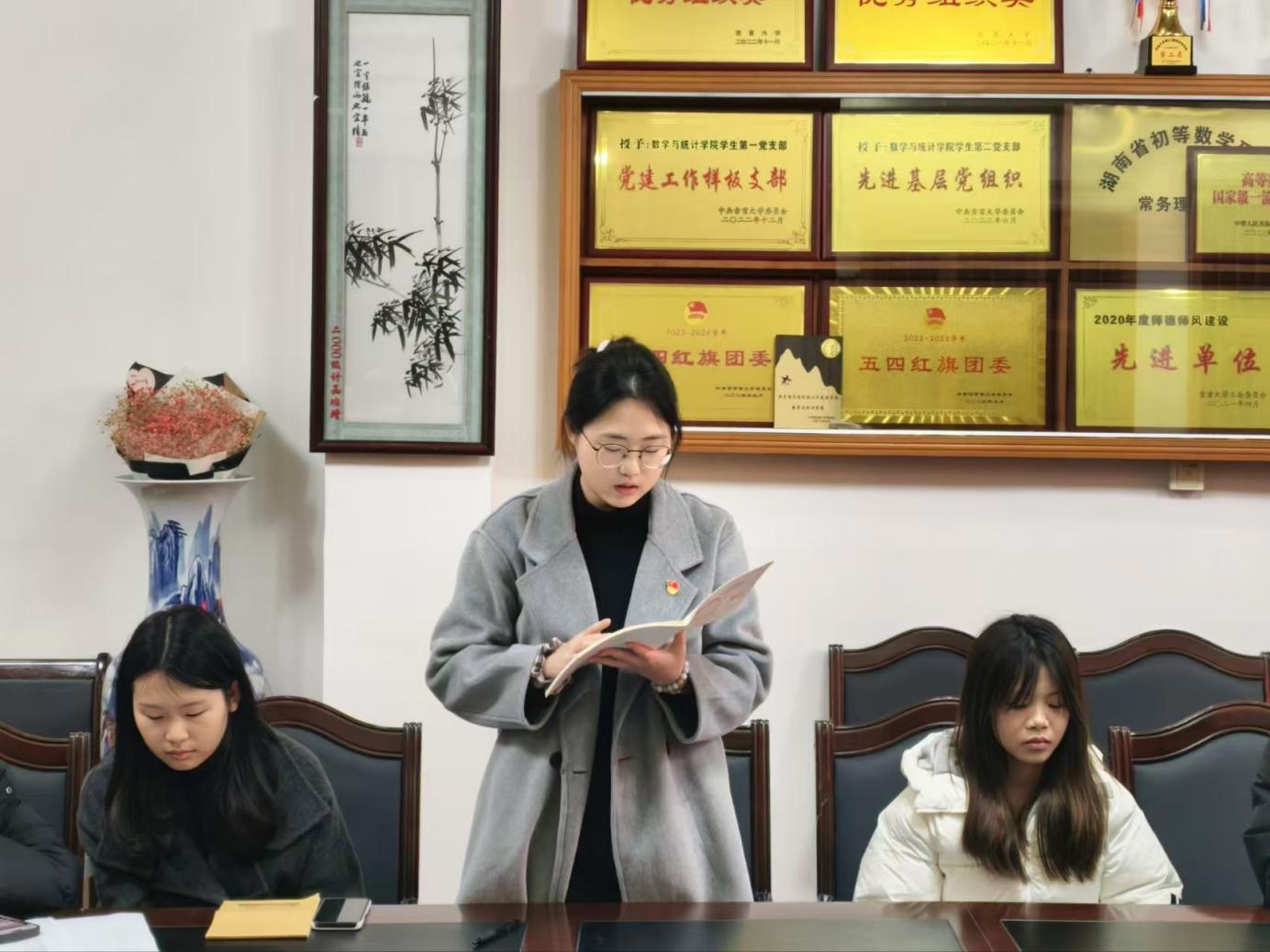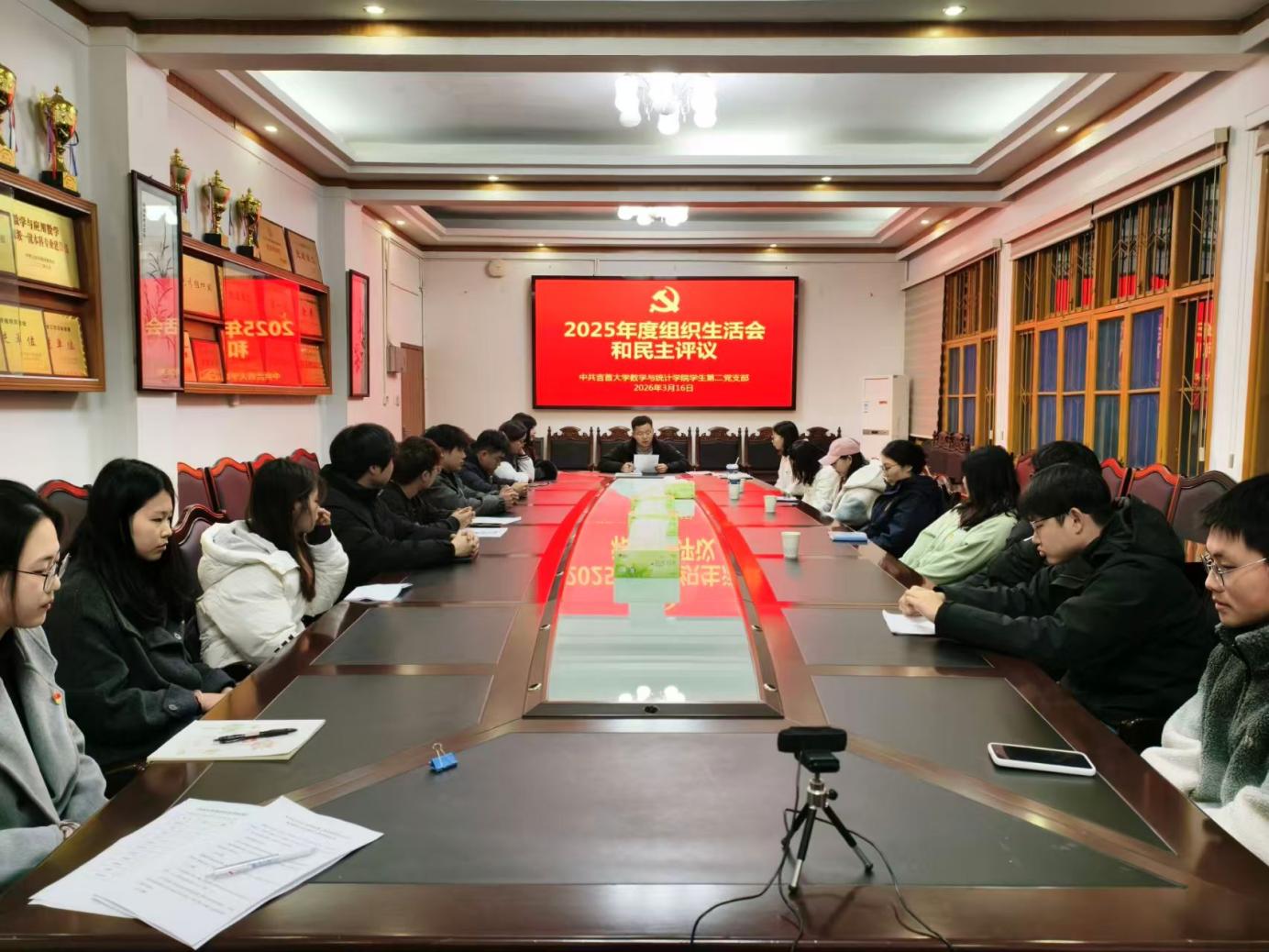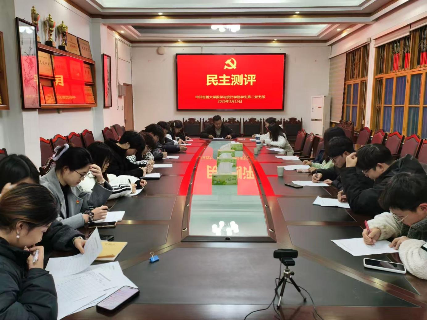 本网讯(通讯员 曾淑杰)为深入学习贯彻习近平新时代中国特色社会主义思想,认真领会习近平总书记关于党的建设的重要思想,切实加强支部党员队伍建设,2026年3月16日晚19:00,吉首大学数学与统计学院学生第二党支部在1209会议室召开2025年度组织生活会并开展民主评议,会议由符婧怡同志主持。