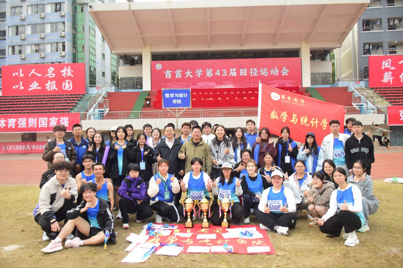本网讯(通讯员 姜柏彤 刘奕子 张安琪 尹堂宇)为展现学院学子精神风貌、强化体育育人实效,2025年10月23日至24日,吉首大学第43届田径运动会在砂子坳校区田径场圆满举办,数学与统计学院学子奋勇拼搏,最终斩获男子团体第二、女子团体第四、团体总分第三的佳绩,连续三年获团体总分前三名。